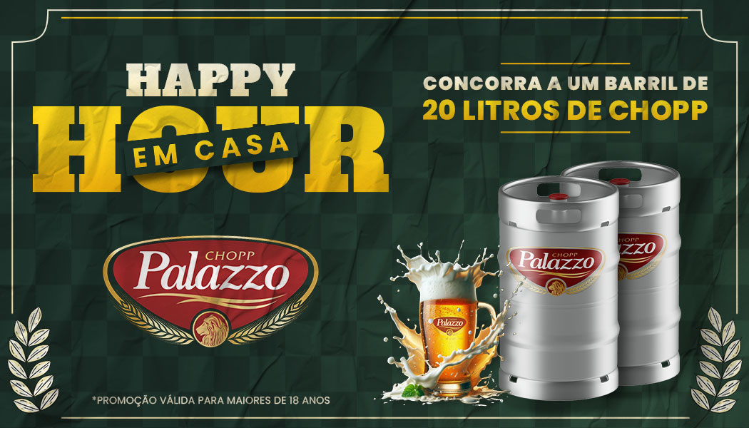 Happy hour em casa com Chopp Palazzo! Concorra um barril de 20 litros de Chopp. - PROMOÇÃO VÁLIDA PARA MAIORES DE 18 ANOS