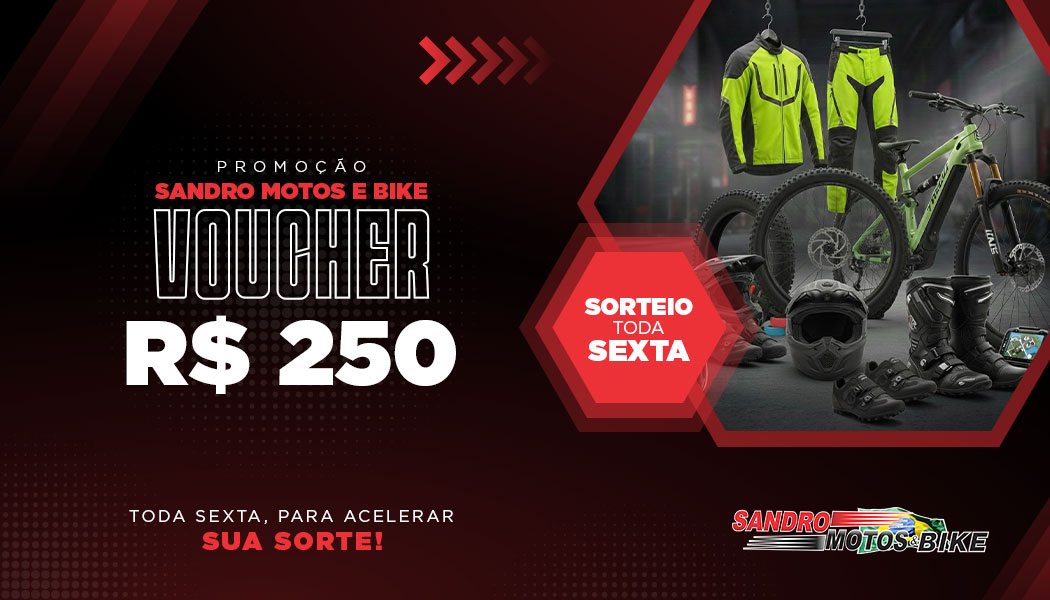 - Um voucher no valor de R$250 para você usar na loja como quiser: peça, acessório, manutenção!